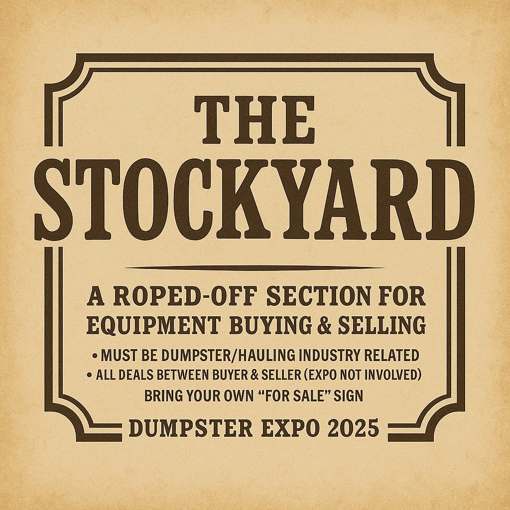 This listing is only for equipment you’re bringing to Dumpster Expo.