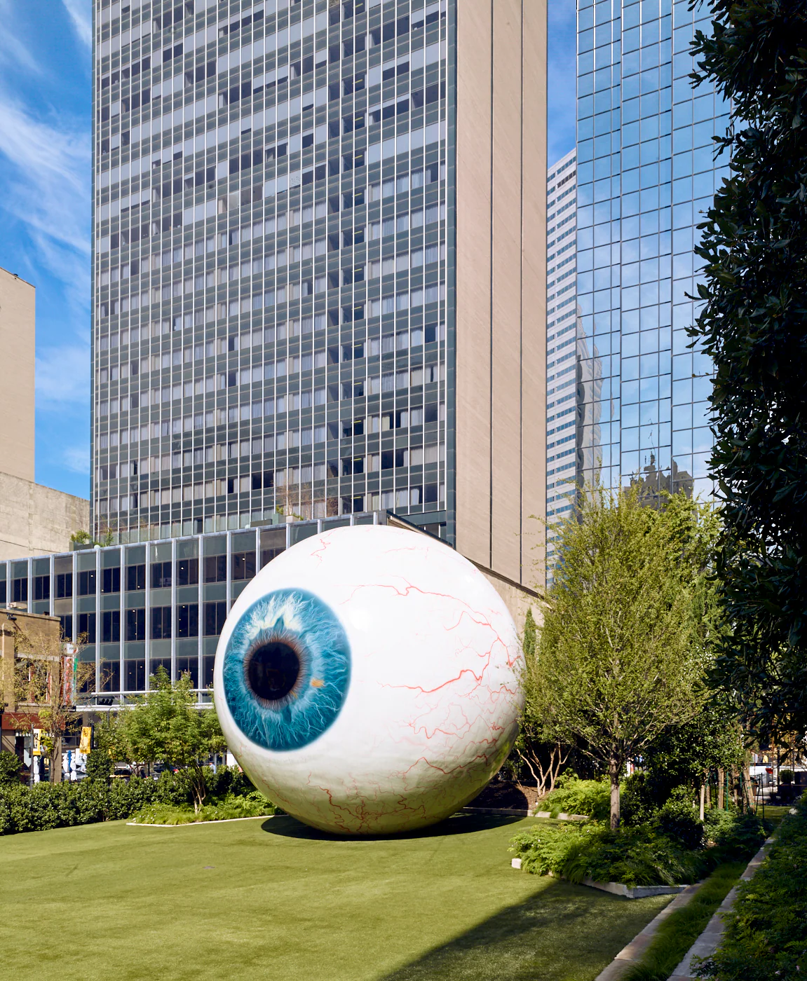 A 30-foot eyeball in the middle of downtown. Quick photo stop that always lands.