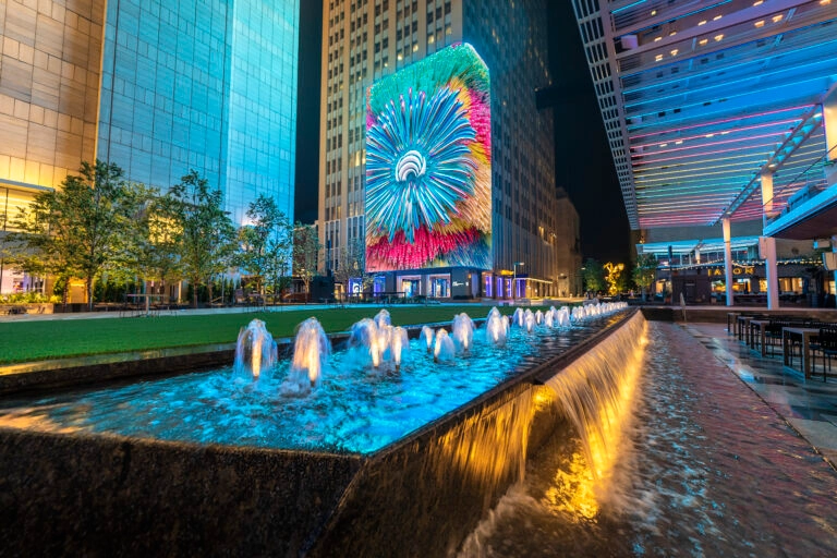 LED media wall, lawn events, and The Exchange food hall right downtown.