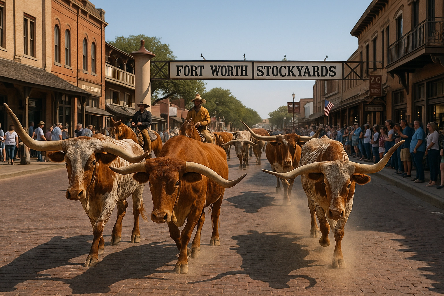 Historic streets, shops, and the daily longhorn drive. Pure Texas.